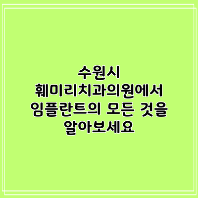 치아 건강은 우리의 삶의 질을 결정짓는 중요한 요소입니다. 특히, 임플란트 시술은 치아가 빠진 자리를 효과적으로 대체해주기 때문에 많은 사람들에게 필수적인 선택이 되고 있습니다. 이번 포스팅에서는 수원시 영통구에 위치한 훼미리치과의원에서 제공하는 임플란트 시술에 대해 자세히 알아보도록 하겠습니다.