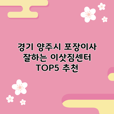 이사는 새로운 시작을 의미하지만, 많은 고민과 스트레스를 동반하기도 해요. 특히 경기 양주에서 포장이사를 계획하고 있다면, 어떤 업체를 선택해야 할지 매우 고민될 수 있죠. 이 포스팅에서는 경기 양주시에 위치한 포장이사 전문 업체 TOP5를 소개하고, 각각의 특징과 장점을 자세히 설명할 거예요.