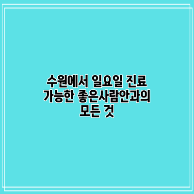 수원에서 눈 건강을 지키고 싶지만 바쁜 일상 때문에 평일에는 병원을 찾기 힘드셨죠? 진료 시간을 걱정하지 않고 주말에 편리하게 눈 검진을 받을 수 있는 방법이 있습니다. 바로 수원에 위치한 좋은사람안과에서 일요일 진료를 받을 수 있다는 사실이죠!