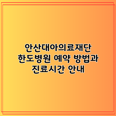 안산대아의료재단 한도병원 예약 방법과 진료시간 안내