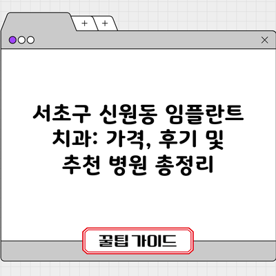 서초구 신원동에서 임플란트를 고려하고 계신가요? 치아 건강은 우리의 삶의 질에 중요한 역할을 합니다. 특히 임플란트는 잃어버린 치아를 복원하는데 매우 유용한 방법입니다. 그러나 수많은 선택지 중에서 어떤 치과를 선택해야 할지 고민되는 것이 사실이에요. 이번 포스트에서는 서초구 신원동의 임플란트 잘하는 치과를 소개하며, 가격, 치료 기간, 후기를 포함한 다양한 정보를 제공할게요.
