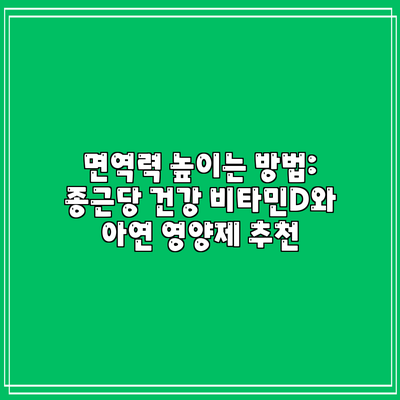 지금, 우리의 면역력을 강화하는 방법에 대해 깊이 있게 알아보겠습니다. 면역력은 우리 몸의 가장 중요한 방어 시스템으로, 건강한 생활을 위한 필수 요소입니다. 특히 환절기에는 기온 변화와 건조한 날씨로 인해 면역력이 떨어지기 쉬운데요, 이런 시기에 면역력을 높이는 방법을 잘 알고 있는 것이 중요합니다. 이번 글에서는 종근당 건강의 비타민D와 아연 영양제를 통해 어떻게 면역력을 높일 수 있는지 알아보도록 할게요.