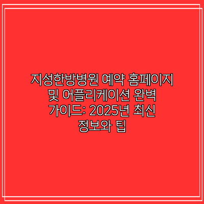 지성한방병원 예약 홈페이지 및 어플리케이션 완벽 가이드: 2025년 최신 정보와 팁