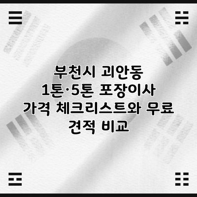 부천시 괴안동에서 포장이사를 계획하고 있다면, 가격과 서비스를 비교하는 것이 무엇보다 중요해요. 이사 비용은 많은 요인에 따라 달라지기 때문에, 사전에 충분한 정보를 수집하는 것이 필요합니다. 이 글에서는 부천시 괴안동의 포장이사 가격 체크리스트와 무료 견적 비교 방법에 대해 자세히 알아보겠습니다.