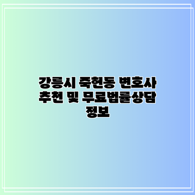 강릉시 죽헌동에서는 무료법률상담을 받을 수 있는 다양한 기관이 있습니다. 다음은 무료로 법률 상담을 받을 수 있는 기관들의 목록입니다: