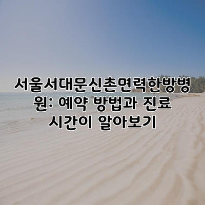 서울서대문신촌면력한방병원은 수많은 환자들에게 사랑받고 있는 곳이에요. 이 병원은 예약 시스템과 함께 다양한 진료 서비스를 제공하여 현대인의 바쁜 일상 속에서도 편리하게 한방 치료를 받을 수 있는 기회를 제공합니다. 특히, 일요일과 공휴일에도 진료를 진행하기 때문에 더욱 많은 환자들에게 큰 도움이 되고 있답니다.
