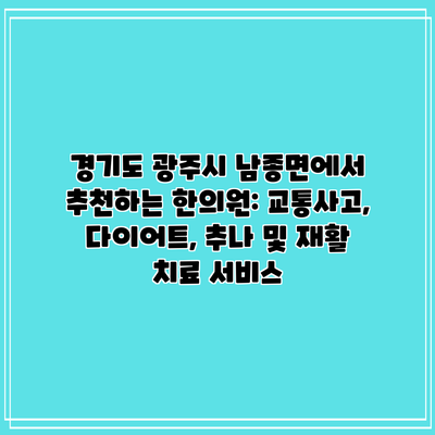 경기도 광주시 남종면에서 추천하는 한의원: 교통사고, 다이어트, 추나 및 재활 치료 서비스