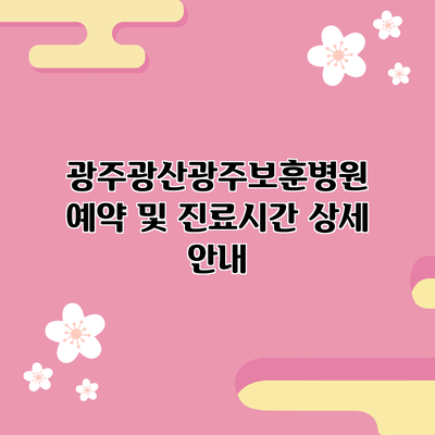 광주광산광주보훈병원 예약 및 진료시간 상세 안내