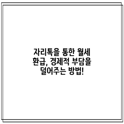 월세를 지불하는 것은 현대인의 삶에서 감당하기 힘든 큰 부담이 될 수 있어요. 하지만 이제는 그 부담을 덜어줄 혁신적인 방법이 있습니다. 바로 자리톡을 통한 월세 환급인데요, 여기서 제기되는 질문은 “정말 효과가 있을까?”입니다. 많은 사람들이 자리톡을 이용해 성공적으로 월세를 환급받았다는 후기를 남기며, 이 서비스의 실효성을 입증하고 있습니다.