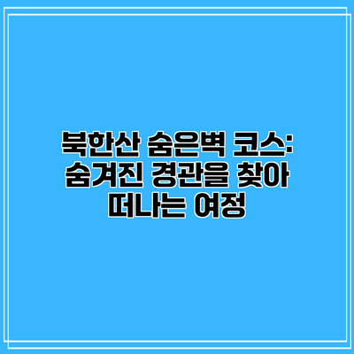 북한산 숨은벽 코스는 서울 근교에서 가장 매력적인 등산로 중 하나로, 자연의 아름다움과 함께 치유의 힐링을 제공합니다. 이곳에 들어서면 산의 청량한 공기와 함께 시작되는 탐방객들의 설렘이 가득합니다. ✅ 숨은벽 코스의 경관을 직접 경험해 보세요. 👉 숨은벽 코스 탐방하기 북한산 숨은벽 코스 개요 북한산 숨은벽 코스는 남산, 관악산, 도봉산과 함께 서울에서 쉽게 접근할 수 있는 등산 코스입니다. … Read more