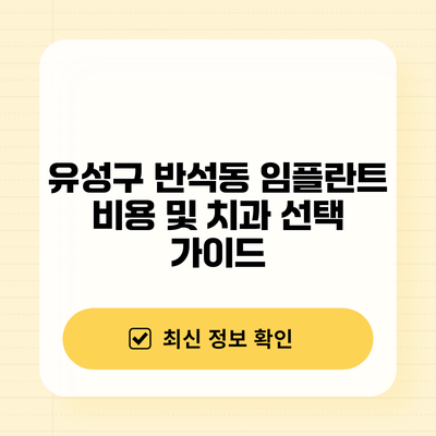 유성구 반석동 임플란트 비용 및 치과 선택 가이드