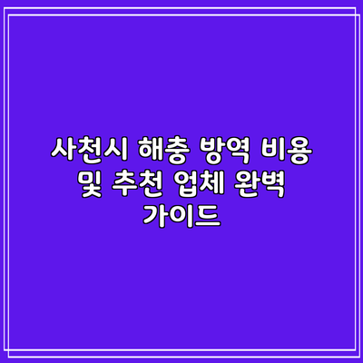 사천시 해충 방역 비용 및 추천 업체 완벽 가이드