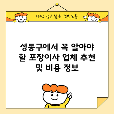 성동구에서 꼭 알아야 할 포장이사 업체 추천 및 비용 정보